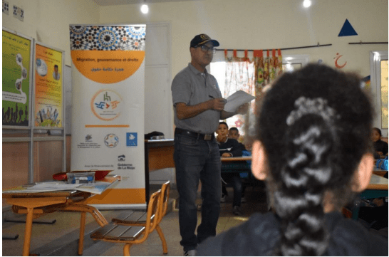 Más de 32 personas, representando la sociedad civil marroquí, grupos de trabajo y espacios de participación, además de funcionarios públicos y docentes y directores/as de escuelas han participado en actividades para desarrollar la convivencia y construir conjuntamente con la comunidad migrante una propuesta en Oujda. Una propuesta desarrollada, elegida (votada) y construida de manera participativa y conjunta que les ha llevado a implementar en 2 escuelas acciones a favor de la diversidad, de la lucha contra las desigualdades y el cambio climático y que ha permitido sentar más bases sólidas de convivencia en la escuela.